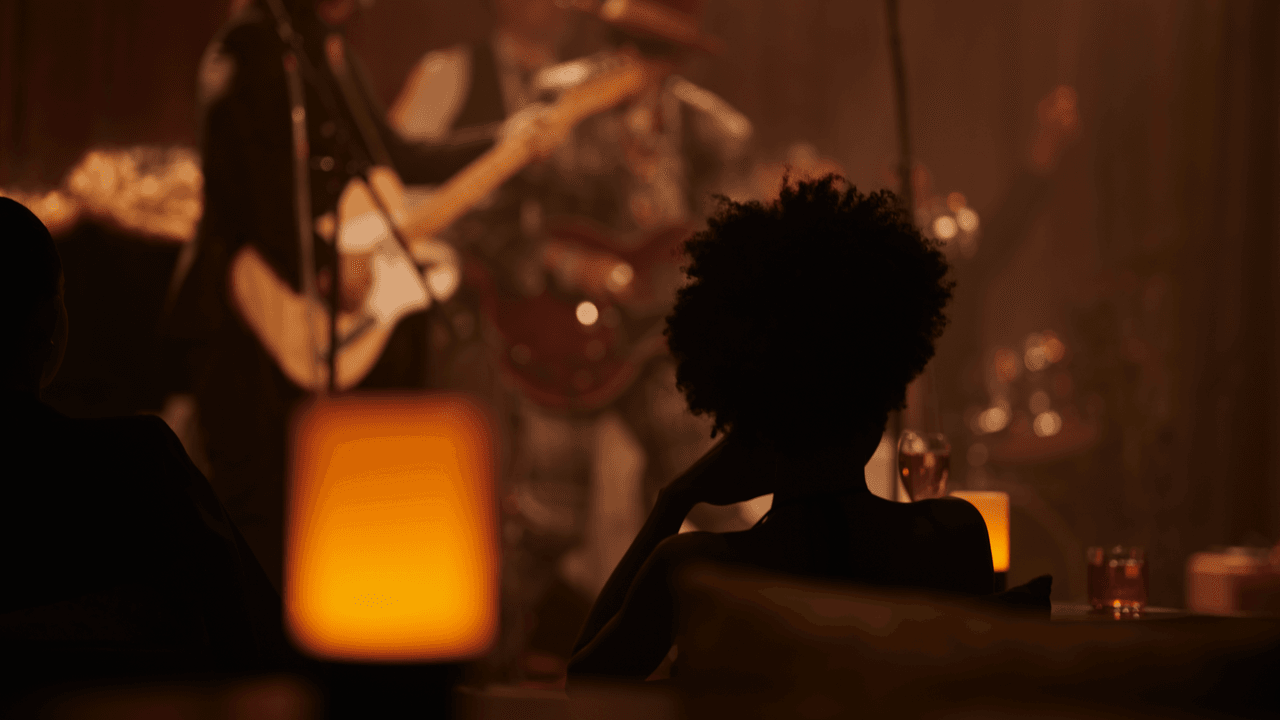 Am I in New York, or a boîte in Paris? The Django hidden under the Roxy Hotel In TriBeCa you could be forgiven for thinking that you have stumbled onto a Left Bank Stage. The vaulted brick ceilings are framed by red curtains, and couples gather at candlelit tables to enjoy a romantic dinner. The woman in plaid, wearing killer heels and matching hat, looked like she could have been straight out of Truffaut. Two cocktail bars, a dining area, and an advanced Meyer Sound system make for a great experience wherever you sit. Waiters wearing white blazers discreetly accept drink orders. I chose the Smoke Show, a smoky cocktail that complemented the red-and-gold color scheme of the space. You can make a night of it with the elevated dinner menu, handcrafted cocktails by mixologist Natasha David. The small signs asking for silence are placed throughout the venue to remind you that this is a music-focused event. The set is a mix of upbeat swing, somber songs and playful riffs. It’s as if you are watching old friends jam. The audience is utterly absorbed, laughing and nodding. They seem to blend into the music. As I waltzed into the SoHo evening, I felt as if I were living my own movie.—Pallavi Kumar, associate visuals director