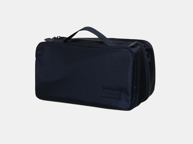 The Jet Toiletry Bag, compact and clever, is made of durable, water-resistant Nylon with a structed silhouette that keeps all your items in place. A dual compartment layout and mesh pockets inside separates skincare essentials from shaving or makeup. Slim enough to fit into a weekender bag or toteIt’s ideal for overnight stays and quick getaways where style meets organization.
