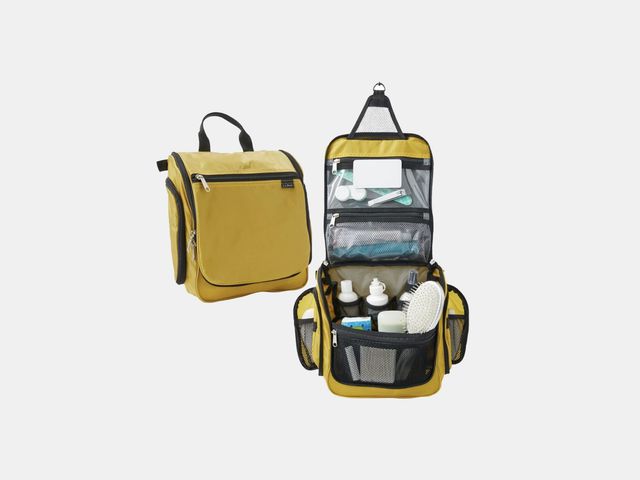 The hanging toiletry bag by L.L.Bean allows you to save a lot of counter space in the bathroom. You can hang this bag on the back door of the bathroom to find all the toiletries you need quickly and easily. Fold it up and zip it when you are ready to return home. Bonus: Made from abrasion-resistant fabric, it’ll last trip after trip.