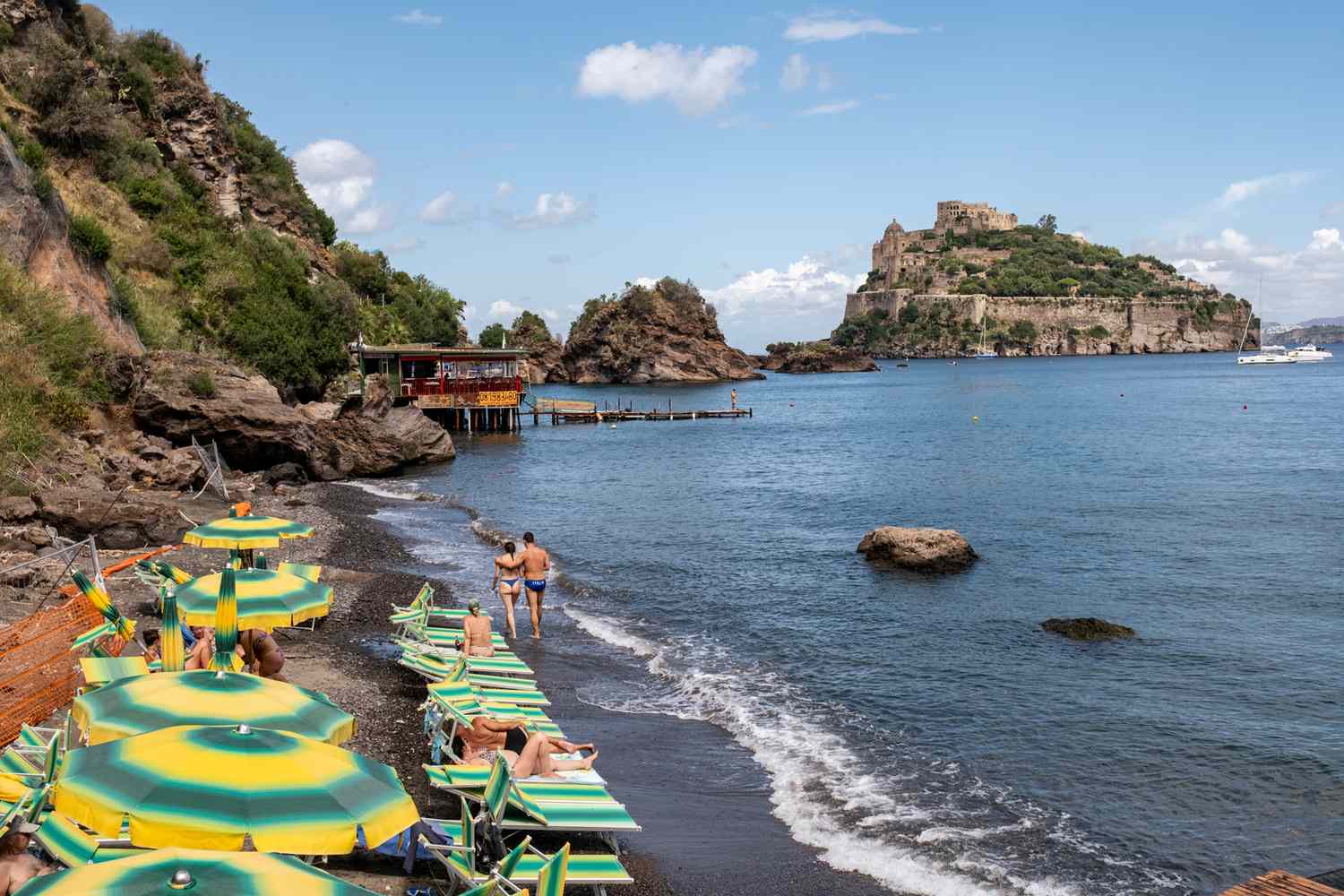 A kaleidoscope umbrellas and chairs are tightly clustered on the pebbly beach of Maronti. They’re so close, you could read your neighbour’s novel. The children scream in delight. You may be knocked off your feet by the waves, but you might get help from a stranger.