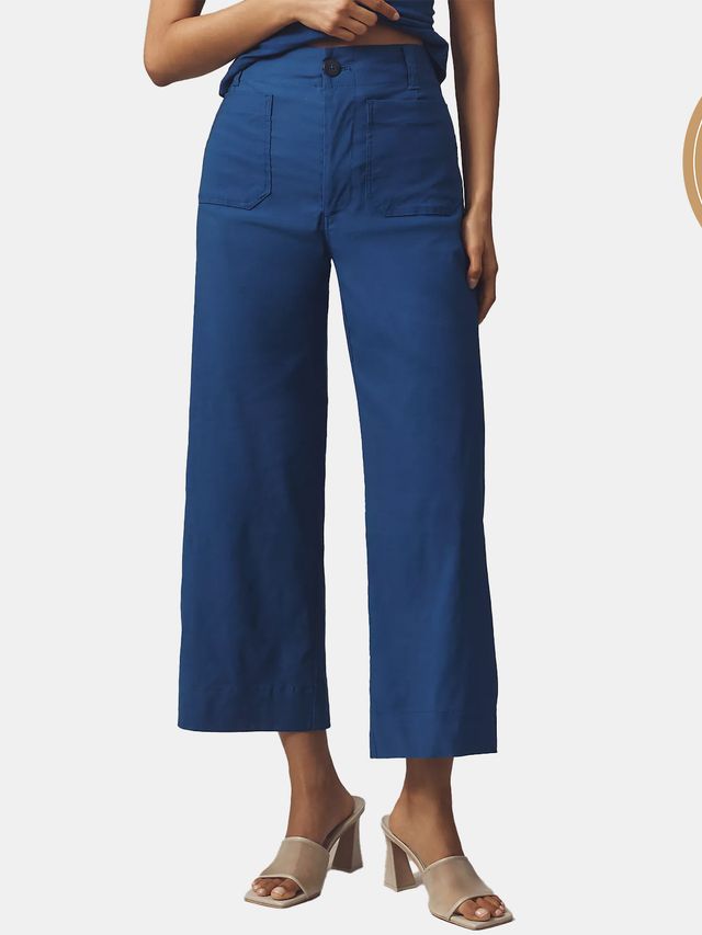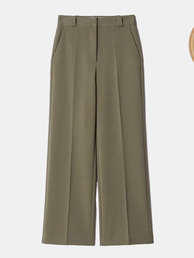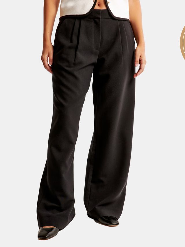 The Transportation and Travel Editor’s trousers are made from a soft, menswear inspired fabric with a partial elastic waistband. Hannah Towey Abercrombie says that this pair of pants feels “basically just like sweatpants.” The low-rise tailored cut and pleating detail flatters curves. The wide leg design provides breathability. Pockets can be used to store travel essentials. The pants’ ability to maintain their shape and resist wrinkles make them ideal for running and playing.