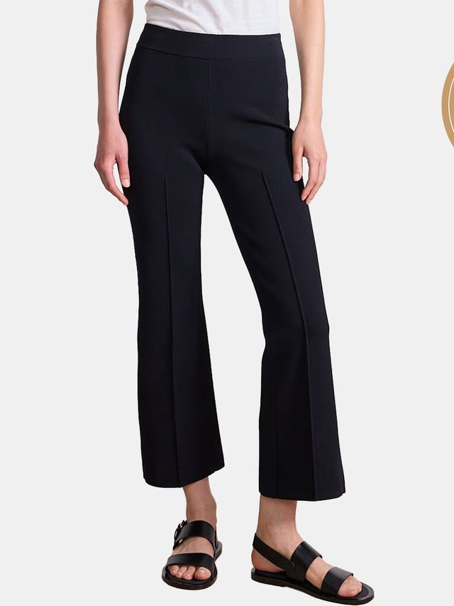 These Ponte trousers feature a high rise waistband with a comfortable, built-in compressive system, creating a flattering shape. Associate commerce director Madison Flager This pair is perfect for business trips. The wide-leg design provides both structure and space. They are available in petite, regular and tall inseams to accommodate different heights and enhance fit and comfort. The fabric is stretchy but firm, and wrinkle-resistant. This makes these pants an excellent choice for all types of stylish travel outfits.