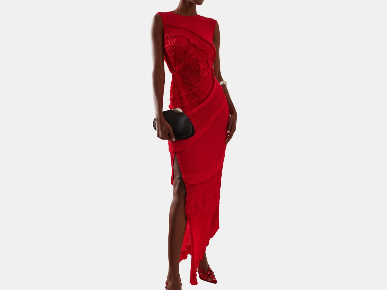 A woman wearing red clothes