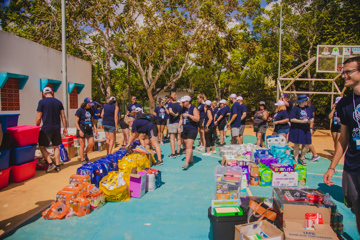 Travel consultants join Algv employees in providing supplies to local Mayan families. (Source: Apple Leisure Group)